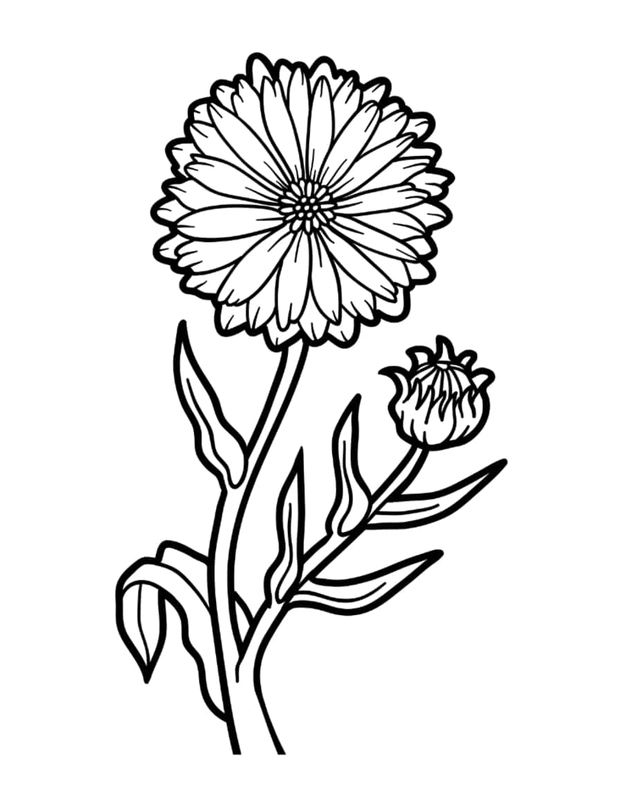Flower Botanical Calendula Coloring Pages Pdf